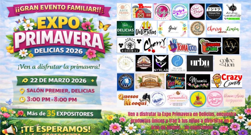 Delicias.- La ciudad de Delicias se prepara para recibir uno de los eventos familiares más esperados del año: la Expo Primavera Delicias 2026, un espacio diseñado para celebrar la temporada con productos únicos, ambiente festivo y actividades para todas las edades. La cita será el próximo 22 de marzo en el Salón Premier, donde decenas de emprendedores y negocios locales se darán encuentro para ofrecer lo mejor de su creatividad.