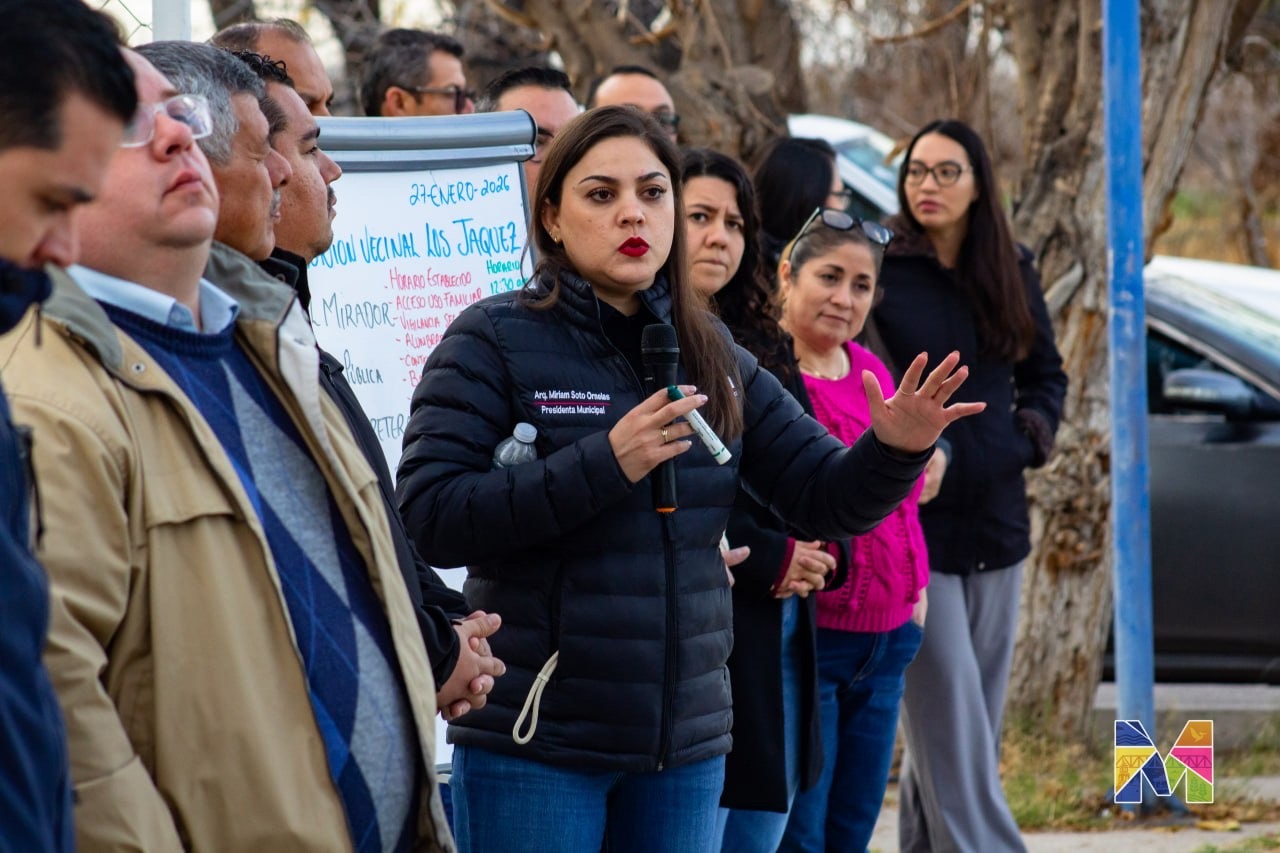 La alcaldesa de Meoqui, Miriam Soto, junto con su Gabinete Municipal, acudió a la comunidad de Los Jáquez, donde sostuvo reunión con vecinos, en la que se escucharon de primera mano las necesidades de los habitantes y se lograron importantes acuerdos para el uso de espacios públicos.