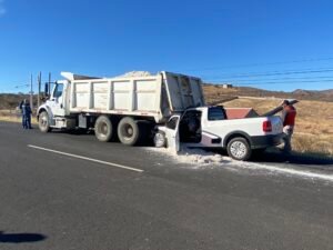 Un accidente de tránsito se registró sobre la carretera Parral–Santa Bárbara, antes de llegar a la comunidad de El Granillo, cuando una pick up Volkswagen se impactó por alcance contra un dompe perteneciente al Gobierno del Estado.