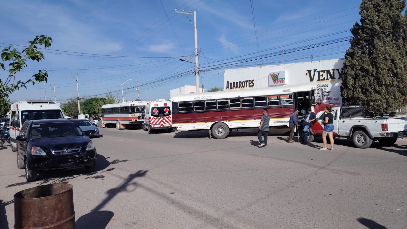 Delicias.- Un camión de pasajeros evitó chocar con un vehículo particular y perdió el control, impactando una camioneta y casi se mete a un negocio en el sector norte de Delicias, la tarde de este jueves. El accidente ocurrió en la calle 4ª, en Lotes Urbanos, y dejó una persona con lesiones leves, que fue atendida en el lugar.