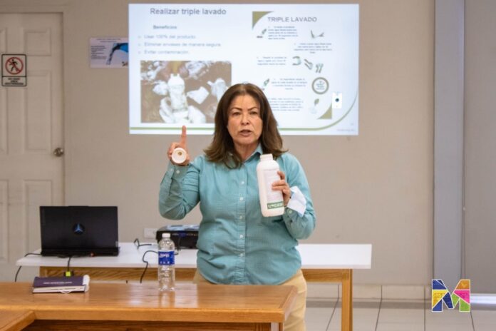 Por su parte, Mary Cruz Sandoval, coordinadora de Inocuidad Agrícola de la Región Centro-Sur en Cesavech, junto con Jocelyn Montes, profesional del mismo departamento y encargadas de la capacitación, informaron que en esta zona se cuenta con centros de recolección de envases vacíos de agroquímicos, destacando que en el municipio de Meoqui se encuentra un Centro de Acopio Temporal en la comunidad de Nuevo Loreto, por lo que es fundamental que los productores conozcan y apliquen el proceso de triple lavado en los envases de agroquímicos. De esta manera, los contenedores pueden llegar en condiciones adecuadas a los centros de acopio, permitiendo darles una segunda vida mediante su reciclaje y contribuyendo así a la conservación del medio ambiente.