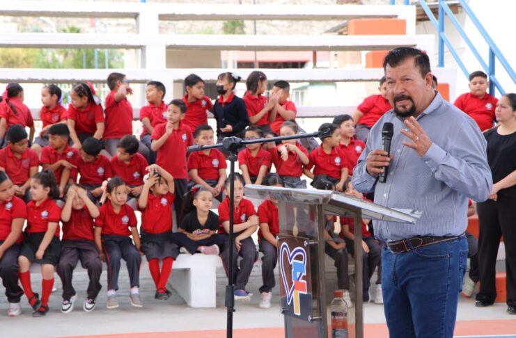 Entrega Fito Gardea nuevas gradas en primaria de Naica