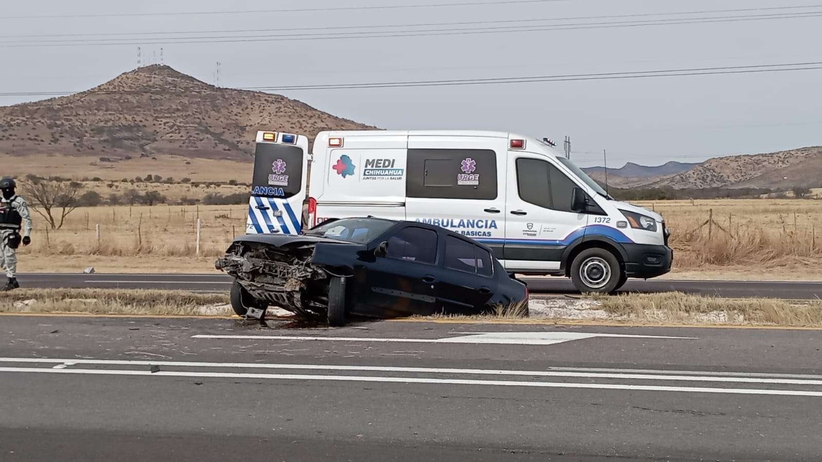 Chihuahua.- Un accidente ocurrido en el kilómetro 30 de la carretera que conecta Cuauhtémoc con Chihuahua, a la altura del entronque a El Vallecillo, dejó a cinco personas lesionadas, incluidos tres menores de 14, 10 y 2 años de edad, entre los adultos lesionados se encuentra una mujer con posible fractura de clavícula.