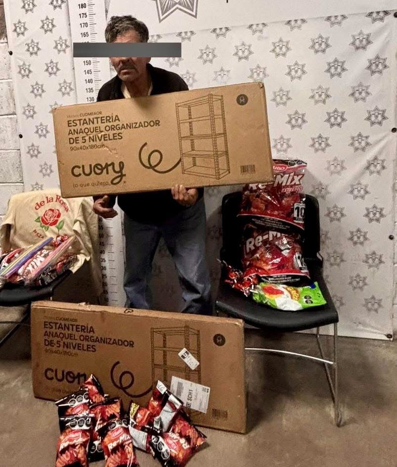 Tras una exhaustiva búsqueda, se localizó al sospechoso en la zona de la plaza Carranza, quien transportaba varios artículos que coincidían con los reportados como robados. Durante la revisión, se le aseguraron dos cajas de anaqueles y varias bolsas grandes con dulces de distintas marcas.