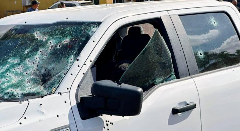 Tras el ataque, la camioneta del funcionario continuó su marcha e impactó a otra unidad.