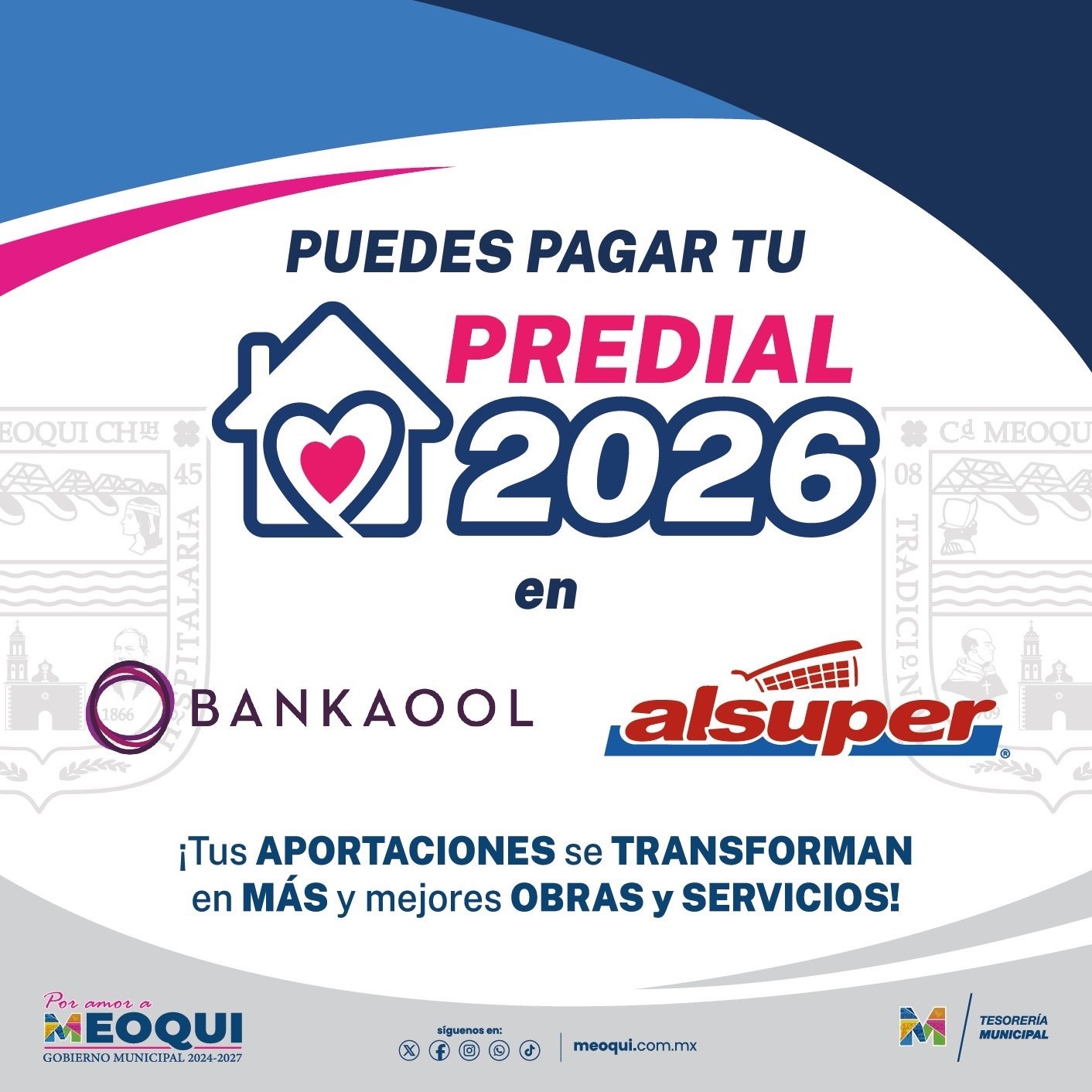 Con el objetivo de brindar mayores facilidades a los contribuyentes y reducir los tiempos de espera, el Gobierno Municipal de Meoqui habilitó dos nuevos puntos alternativos para el pago del impuesto predial, esto en Alsuper y Bankaool de Meoqui. En estos puntos de pago, los ciudadanos podrán seguir aprovechando los descuentos por pronto pago del 15%, 10% y 5%, vigentes de acuerdo con el periodo correspondiente y el descuento adicional por adulto mayor, pensionado.