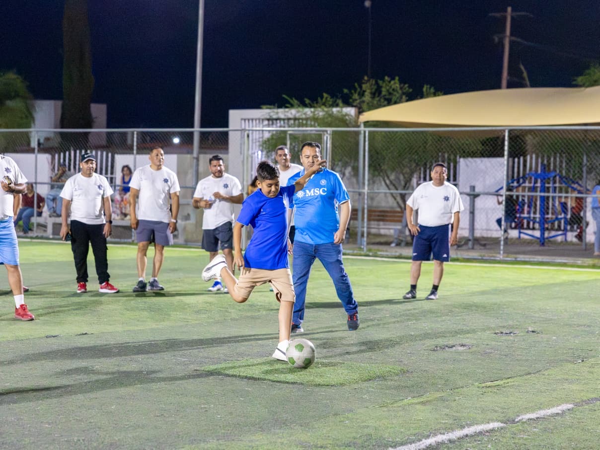 Delicias.- Con un partido de fútbol como actividad principal, jóvenes concluyeron su participación en el programa Construyendo Camino, implementado por el área de Justicia Cívica en el municipio de Delicias. El evento fue encabezado por el presidente municipal, Jesús Valenciano García, y contó también con la presencia de la titular de Justicia Cívica, Lili Murillo.
