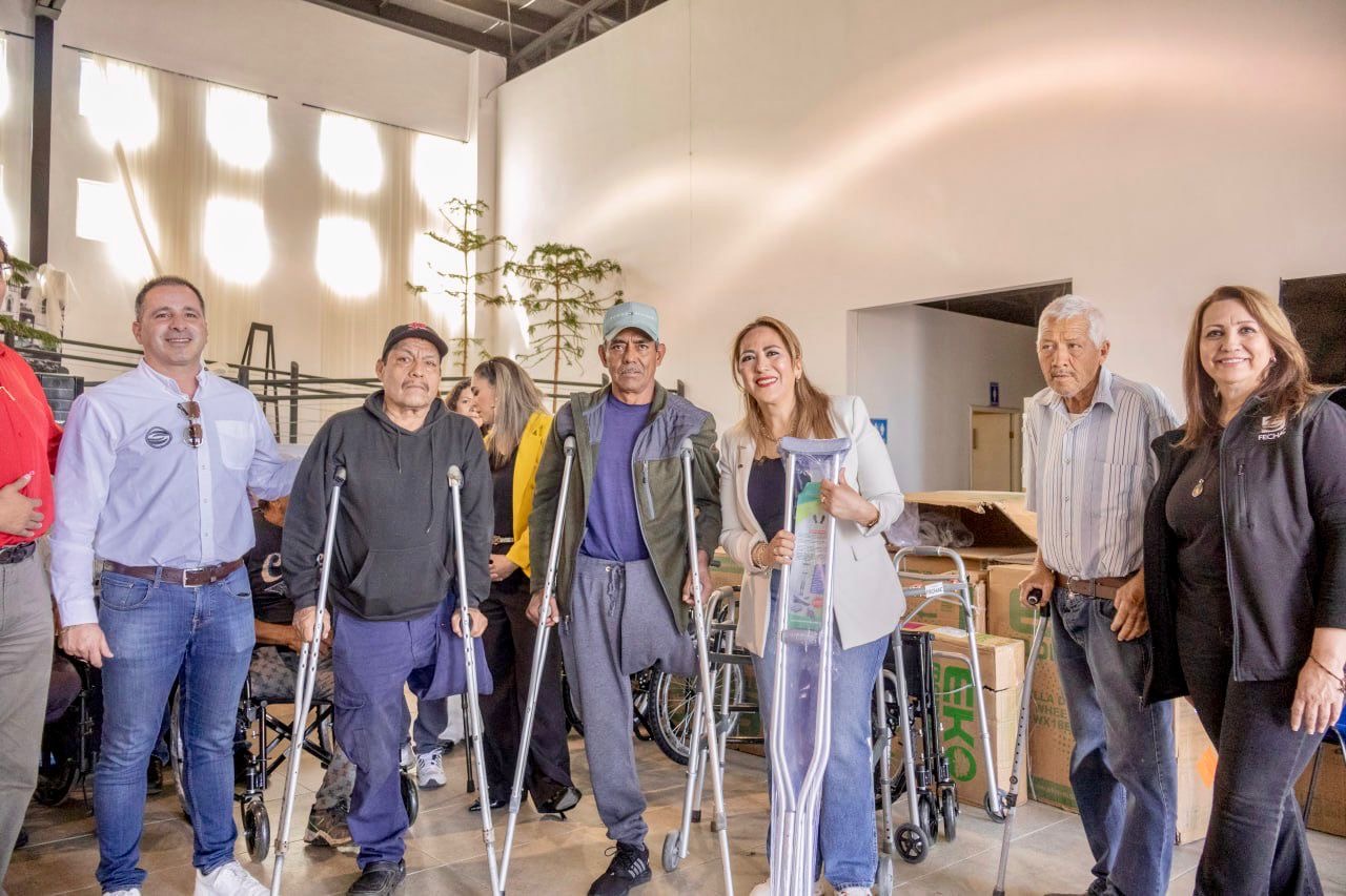 Entre los apoyos entregados se encuentran 60 sillas de ruedas con descansabrazos abatibles, 18 muletas en diferentes tamaños, 40 sillas cómodo tipo 3 en 1, 25 andaderas tipo rollator y 15 andaderas plegables.