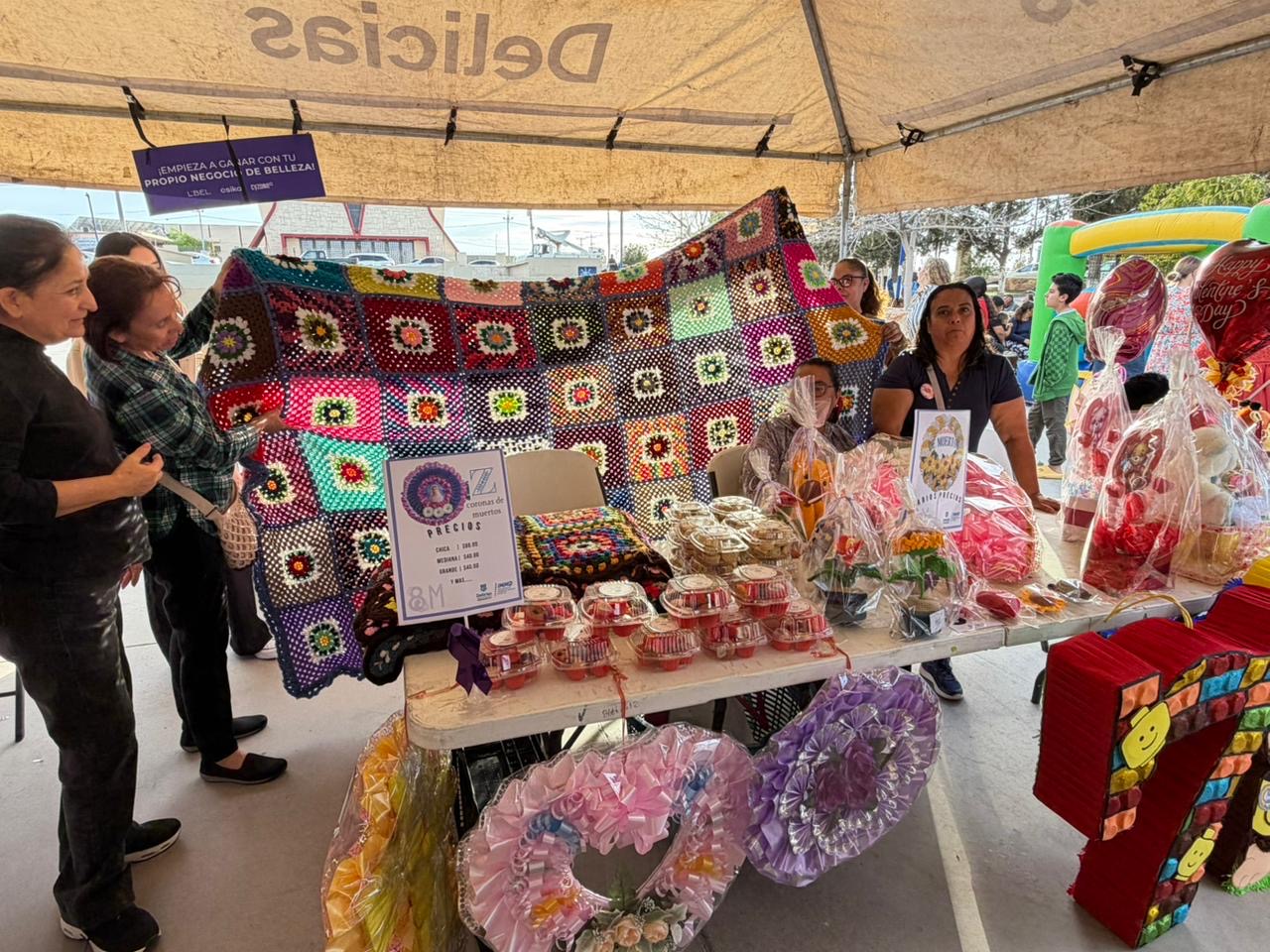Delicias.- La exposición “Entre Manos de Mujer” se llevó a cabo en la Plaza del Santuario, donde talleristas de distintos centros comunitarios presentaron los productos que elaboran tras participar en los cursos impartidos por el Instituto Municipal de las Mujeres de Delicias. El evento reunió a participantes que mostraron artículos realizados a partir de las habilidades aprendidas en los talleres de empoderamiento que ofrece la dependencia.