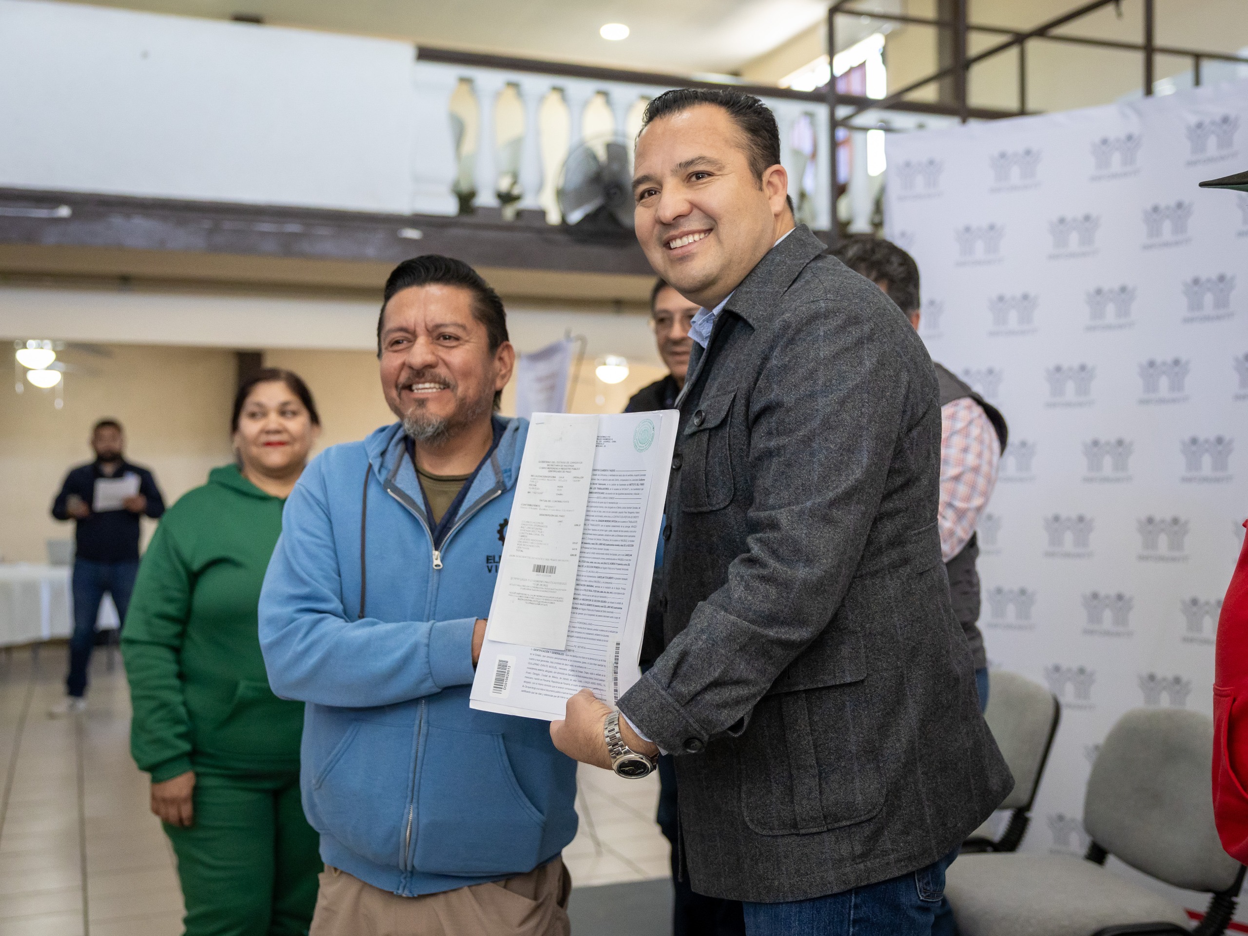 Delicias.- Gracias a las gestiones encabezadas por el presidente municipal Jesús Valenciano García, el Instituto del Fondo Nacional de la Vivienda para los Trabajadores (INFONAVIT) llevó a cabo la liberación de más de 100 escrituras a familias del municipio, fortaleciendo así el patrimonio de 100 hogares delicienses y brindándoles certeza jurídica sobre su vivienda.