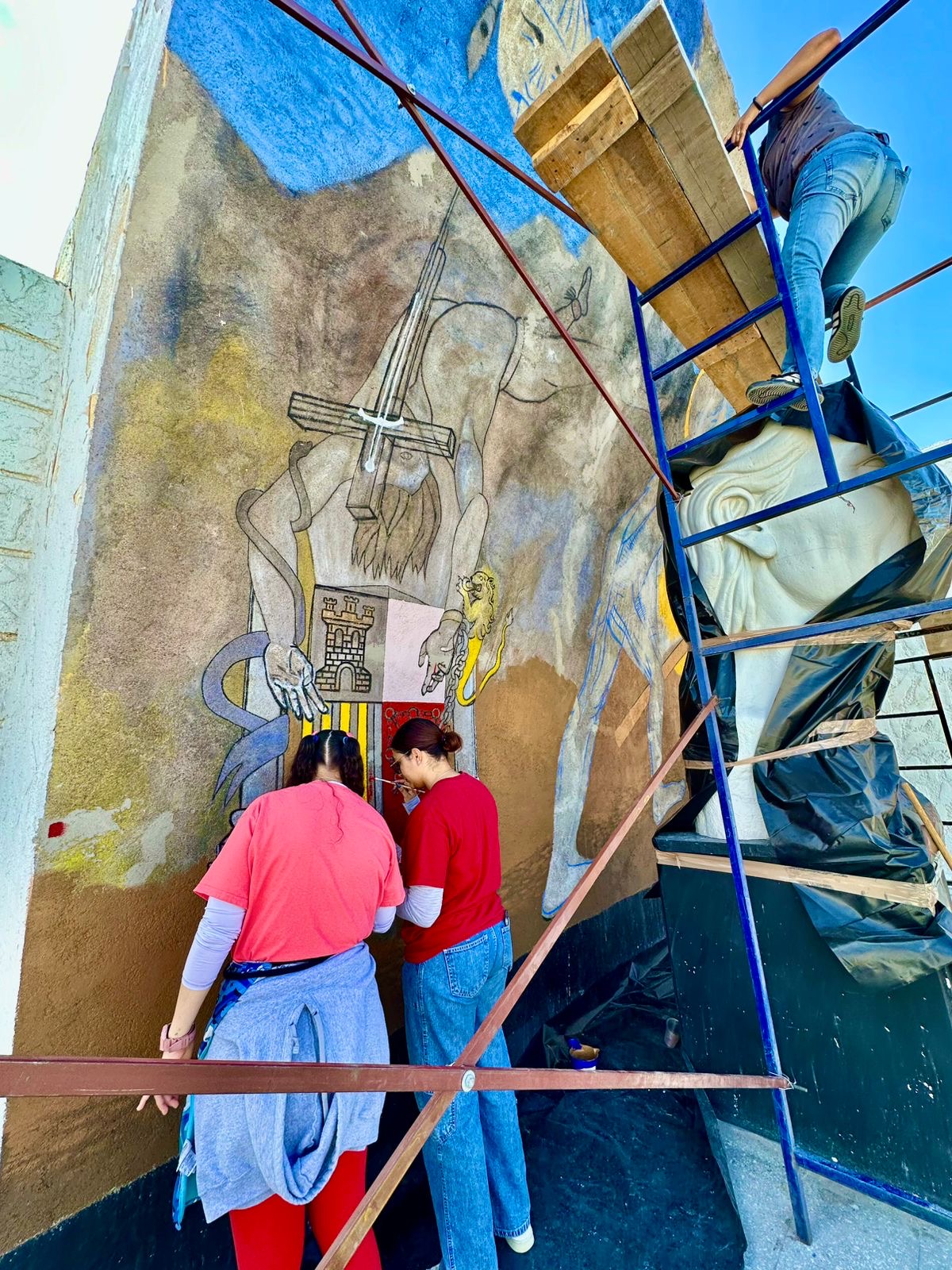 La restauración es realizada por estudiantes de la Universidad Autónoma de Chihuahua, quienes forman parte de una brigada de la Facultad de Artes que trabaja en el rescate del mural bajo supervisión especializada. Se estima que los trabajos concluyan en aproximadamente una semana, momento en el que se realizará la supervisión final por parte de la Facultad de Artes y el municipio para garantizar que la restauración cumpla con los estándares de conservación y calidad.