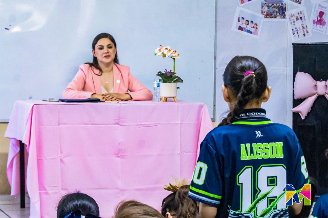 Meoqui.- En el marco del Día Internacional de la Mujer, la alcaldesa de Meoqui, Miriam Soto, impartió una plática a alumnos de sexto grado de la Escuela Primaria Algodoneros 2080, de Delicias, como parte del programa “Mujeres que Inspiran”, donde fue invitada por la maestra Lucero Navarrete como ponente para compartir su experiencia en el servicio público.