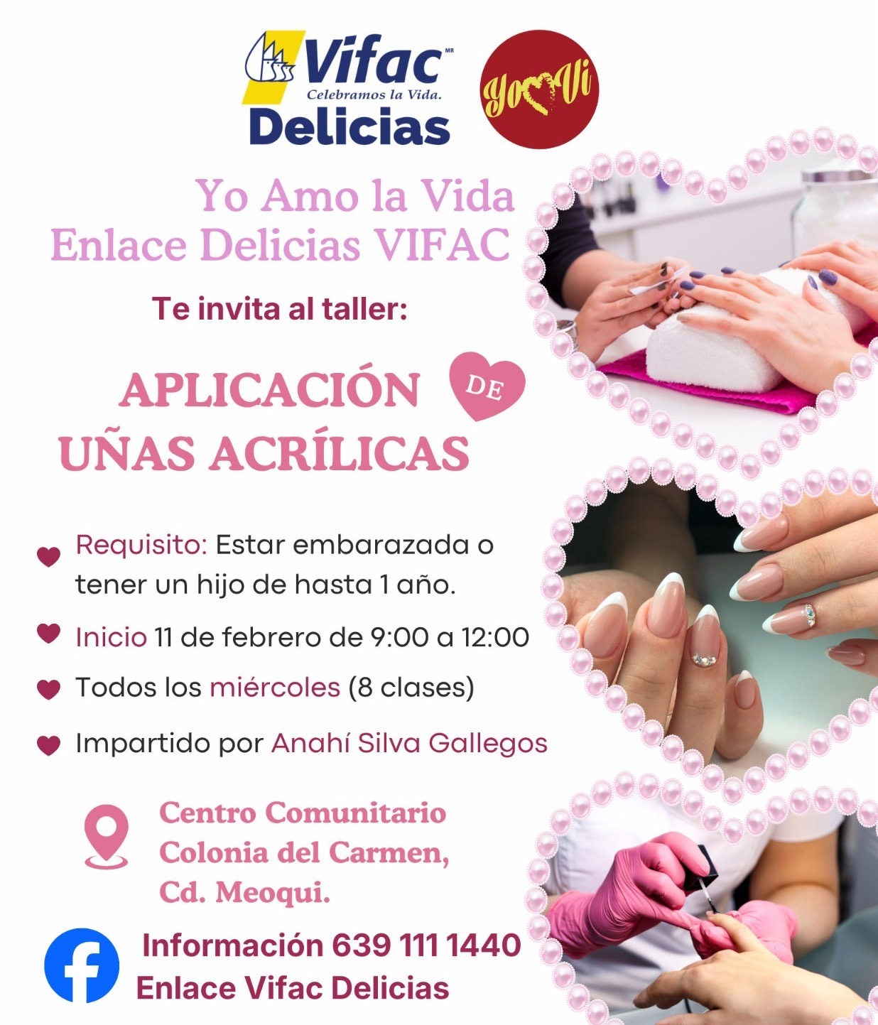 El Gobierno Municipal de Meoqui, a través de la Instancia de Atención a la Mujer y en coordinación con la asociación Yo Amo la Vida A.C., invita a mujeres embarazadas o con hijas e hijos menores de un año a participar en un taller gratuito de aplicación de uñas, el cual se impartirá durante ocho semanas.