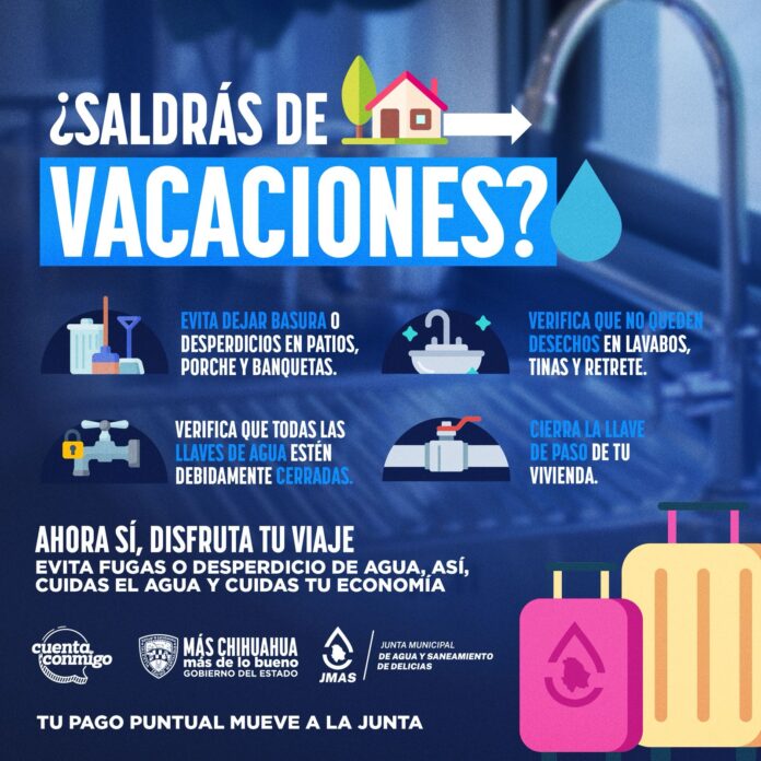 Delicias.- La Junta Municipal de Agua y Saneamiento (JMAS) de Delicias emitió recomendaciones para evitar fugas y desperdicio de agua durante el periodo vacacional.