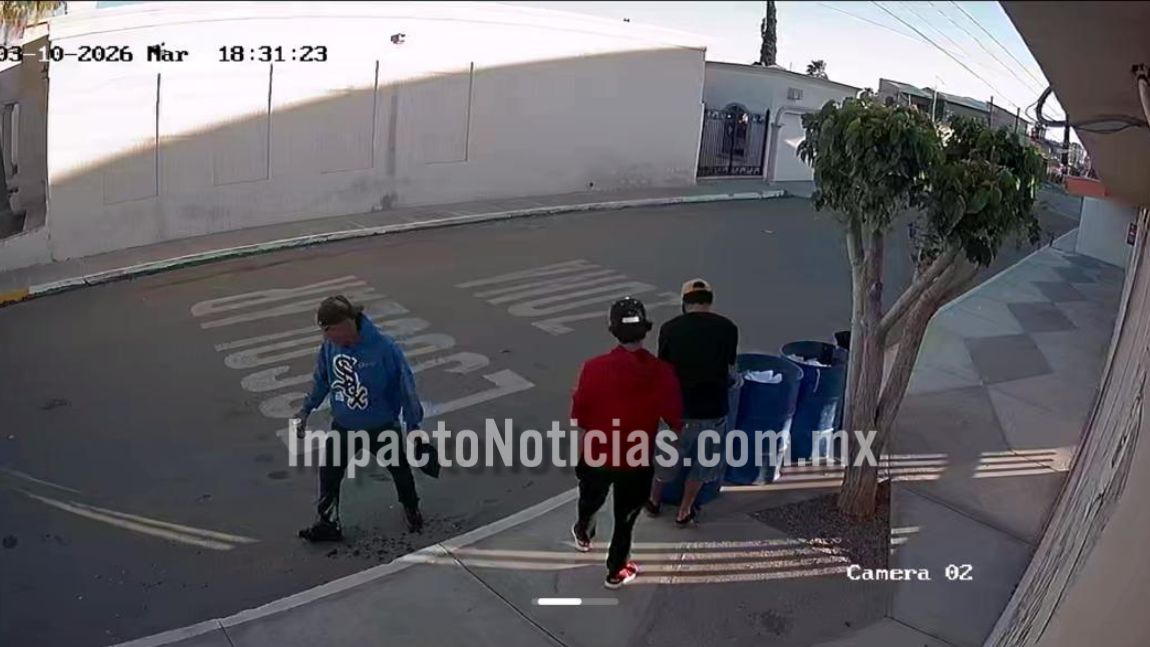 Cámaras de seguridad de dicha institución captaron los momentos, en donde se puede ver a un joven de vestimenta un pantalón, zapatos y gorra color negro, así como playera roja, mientras que otro vestía pantalón de mezclilla, playera color negro y cachucha café y el tercero pantalón negro, sudadera azul y una cachucha verde militar.