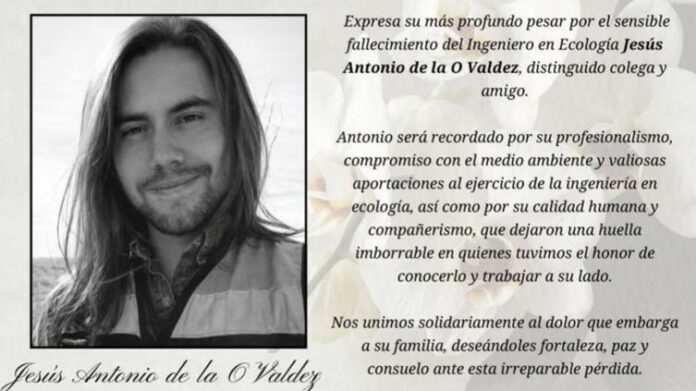 Chihuahua.- A través de sus redes sociales, el Colegio de Ingenieros en Ecología de Chihuahua lamentó el fallecimiento de Jesús Antonio de la O Valdez, ingeniero en ecología originario del estado, quien fue localizado sin vida en una fosa clandestina en el municipio de Concordia, Sinaloa.