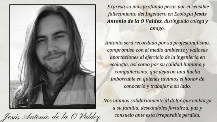 El organismo expresó su pesar por la muerte del profesionista, a quien describieron como un colega comprometido con el cuidado del medio ambiente y con una destacada trayectoria dentro del gremio.