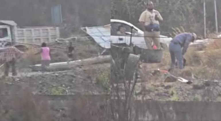En las imágenes se observa a la mujer llegar al sitio del accidente e intentar acercarse a un cuerpo tendido en la terracería. Un grupo de hombres trató de detenerla mientras ella gritaba para que le permitieran ver quién era la persona fallecida.