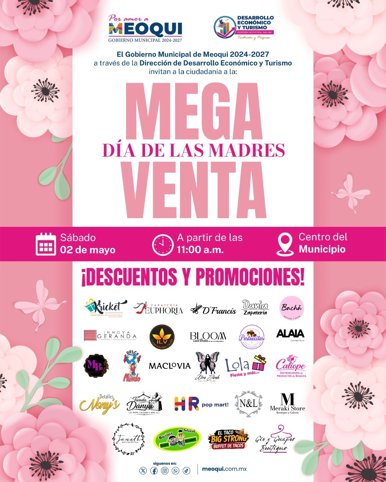 Meoqui.- Con el objetivo de impulsar la economía local y ofrecer opciones accesibles para celebrar a mamá, el Gobierno Municipal de Meoqui, a través de la dirección de Desarrollo Económico y Turismo, invita a la ciudadanía a la Gran Venta por el Día de las Madres, que se llevará a cabo este sábado 2 de mayo en la zona centro, Así lo informó el director de Desarrollo Económico y Turismo, Alan Mata, quien destacó que en este evento participarán 27 comerciantes y 47 expositores, sumando más de 70 productores locales que estarán ofertando una amplia variedad de artículos ideales para regalar en esta fecha especial.