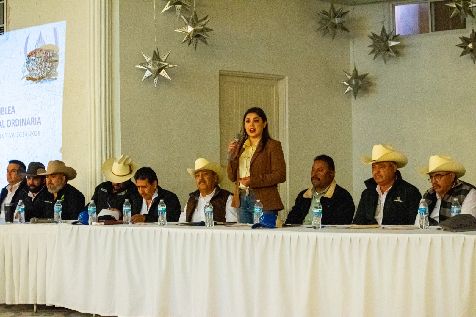 La Alcaldesa de Meoqui, Arq. Miriam Soto, acudió como invitada a la Asamblea Anual del Módulo 7, donde dirigió un mensaje a las y los asistentes, destacando la importancia de la unidad, el trabajo en equipo y la participación activa del sector agrícola para hacer frente a los retos que enfrenta el campo. Señaló que, aunque los últimos años han sido especialmente complicados para la agricultura, la participación y organización de los usuarios del módulo marcan la diferencia ante la adversidad. “Estos han sido años muy retadores para la agricultura, pero verlos aquí, unidos y participando, demuestra que la única forma de salir adelante es estando juntos y trabajando de la mano”, expresó la alcaldesa.