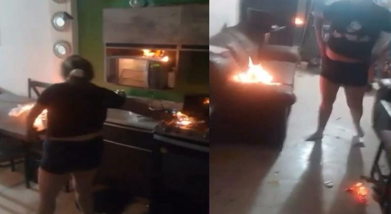 Un video grabado por el hombre muestra a la mujer iniciando el fuego dentro de la casa, que se propagó rápidamente. El hombre saltó por una ventana para ponerse a salvo y pidió ayuda al 911.