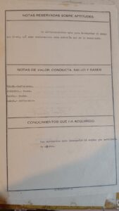 Hay un detalle que llama especialmente mi atención. Más adelante aparecen los apartados titulados “castigos que se le han impuesto” y “licencias que ha usado”, y ambos permanecen en blanco. Nunca fue sancionado, nunca solicitó descanso. Ese silencio en el papel dice mucho: revela a un hombre disciplinado, enfocado, con un estricto apego al deber y al cumplimiento de las misiones que le fueron encomendadas.