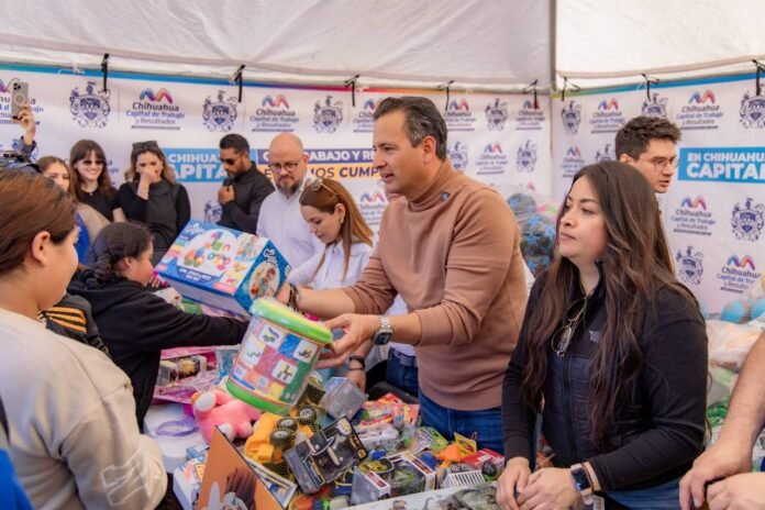 CHIHUAHUA.- En el marco de la celebración del Día de Reyes, el alcalde Marco Bonilla participó en la entrega de juguetes recolectados durante el tradicional “Juguetón”, iniciativa impulsada por TV Azteca Chihuahua, con el objetivo de llevar alegría, amor y esperanza a niñas y niños de la capital.