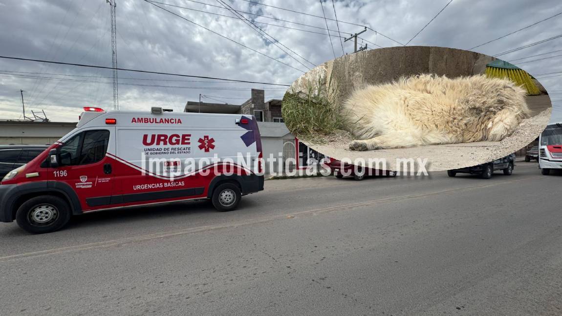 El perro se quedó en el patio frontal de un domicilio, agonizando por las lesiones que tiene, en tanto, personal de vialidad tomó nota de la situación.