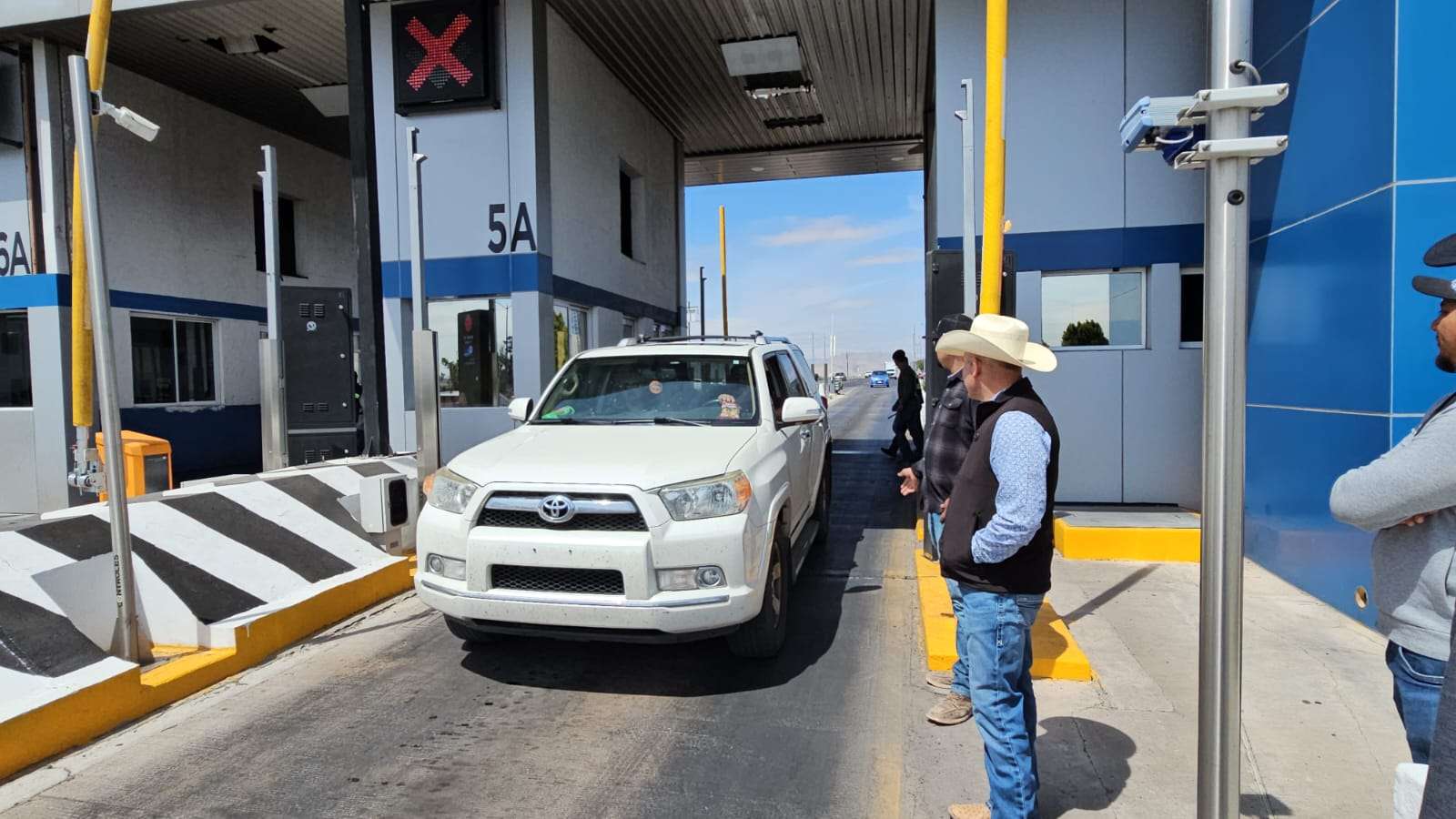 Chihuahua.- Productores del campo, encabezados por el líder campesino Eraclio “Yako” Rodríguez, permitieron el libre tránsito en la caseta de Sacramento, ubicada en el kilómetro 30 de la carretera Chihuahua-Ciudad Juárez. La acción se llevó a cabo este lunes, levantando las plumas en ambos sentidos.