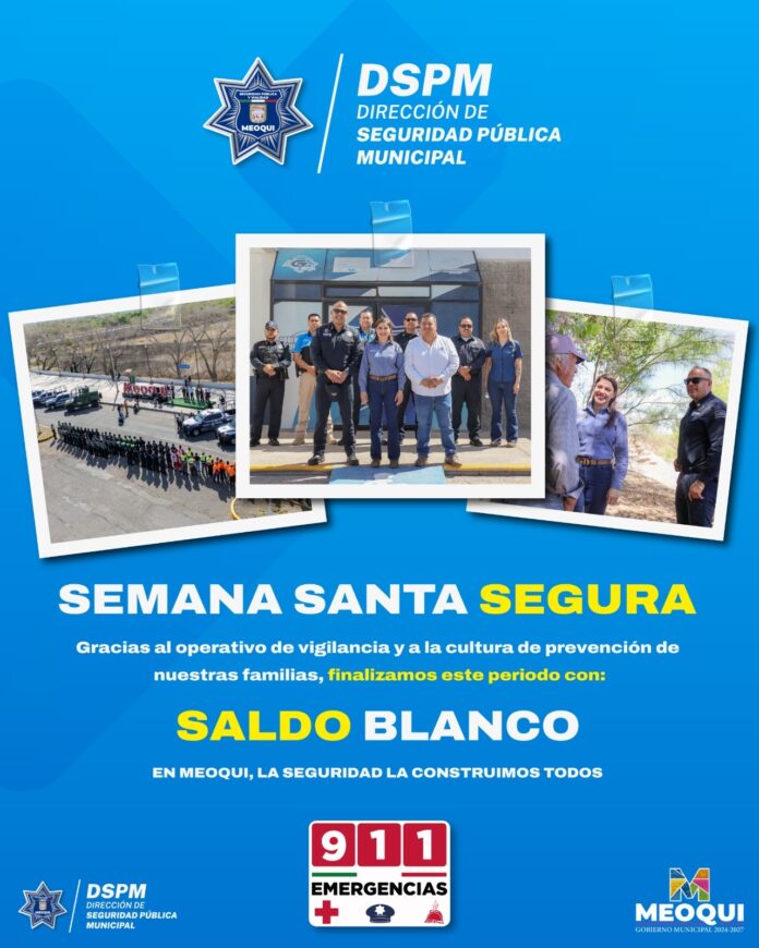 Meoqui.- El municipio de Meoqui registró saldo blanco durante el periodo vacacional de Semana Santa, resultado del Operativo “Semana Santa Blanca”, implementado con el objetivo de salvaguardar la integridad de las y los meoquenses, así como de los visitantes.