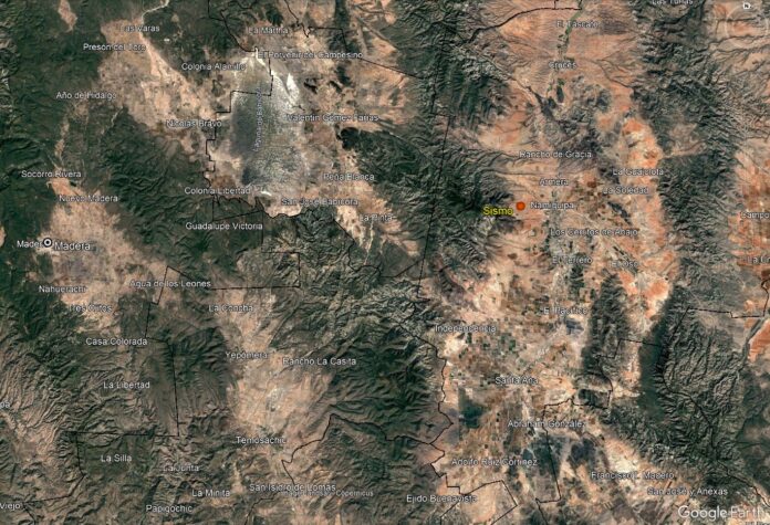 Chihuahua.- Un sismo de magnitud 3.8 se registró la noche del lunes 2 de marzo en el municipio de Namiquipa, Chihuahua, según el Servicio Sismológico Nacional (SSN). El epicentro se ubicó a 67 km al este de Madera, con una profundidad de 5 km.