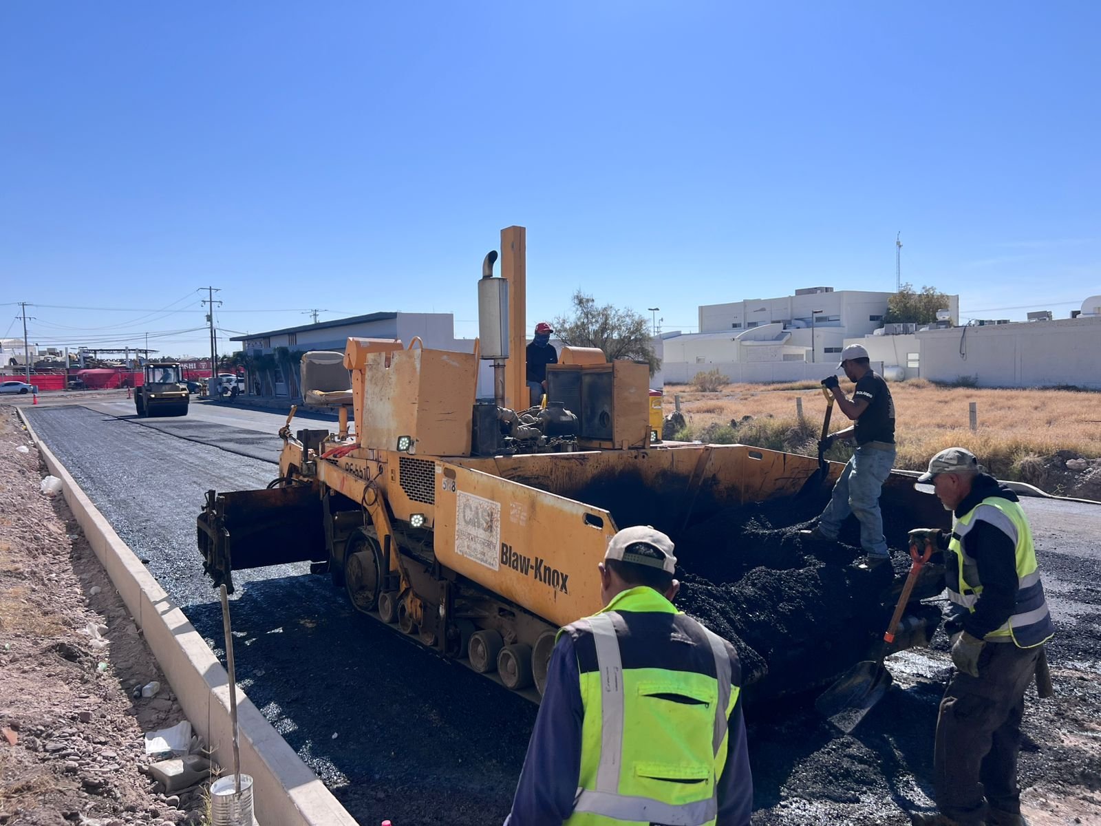 CAMARGO.- El presidente municipal Jorge Aldana, supervisó los trabajos de pavimentación que se realizan en la calle Ojinaga, una obra que se ejecuta en dos etapas y que permitirá concluir por completo esta importante vialidad.