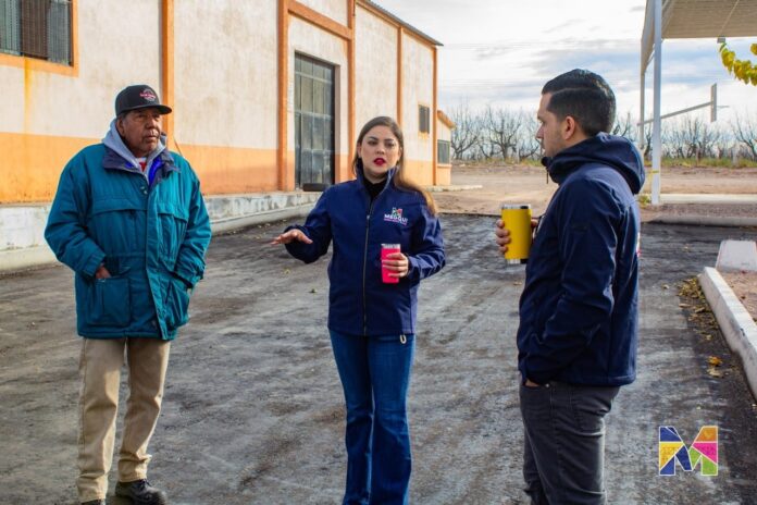 La alcaldesa de Meoqui, Miriam Soto, realizó una supervisión de los avances en la pavimentación de las calles que rodean la plaza principal de la comunidad de El Potrero del Llano, obra que se lleva a cabo en coordinación con el Comité Pro Obras de la localidad y la Presidencia Seccional de Guadalupe Victoria.