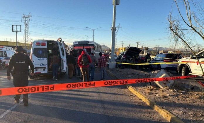 Un fuerte accidente vial se registró la tarde del jueves 15 de enero en el cruce de las avenidas Fuentes Mares y R. Almada, al sur de Chihuahua, dejando como saldo una persona sin vida y al menos 19 lesionados.