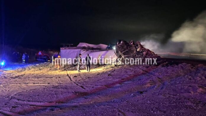 Camargo.- Un tráiler se volcó y se incendió en el kilómetro 92 de la carretera Camargo a La Cruz, en sentido norte a sur, a la altura del Puente El Colorado, en el municipio de La Cruz, este miércoles. El conductor, Víctor Hugo Gómez Palomino, de 40 años, perdió el control del vehículo debido a una falla mecánica en la dirección hidráulica.