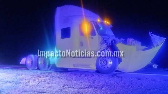 Tras esta acción, el tractocamión salió de la carretera e impactó contra un señalamiento vial tipo “fantasma”, causando daños en la parte frontal de la unidad.