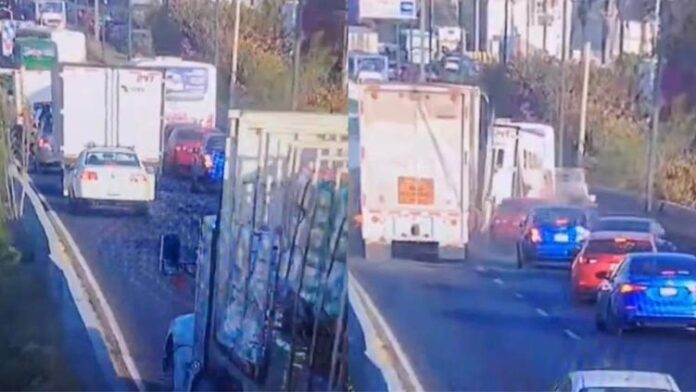 El percance ocurrió alrededor de las 8:00 horas cuando el camión, cargado con refrescos, circulaba a gran velocidad y terminó impactando una fila de autos en medio del tráfico. Un automóvil tipo Jetta fue el más afectado al quedar prensado entre el tráiler y una camioneta de paquetería, lo que provocó la muerte de su conductor en el lugar.